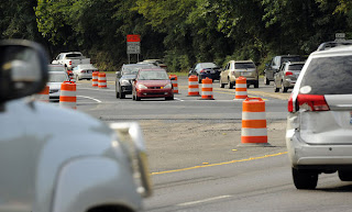 Frank and I had a classic Male/Female moment yesterday. It seems that there are miles and miles of orange barrels along Redwood Road these days.